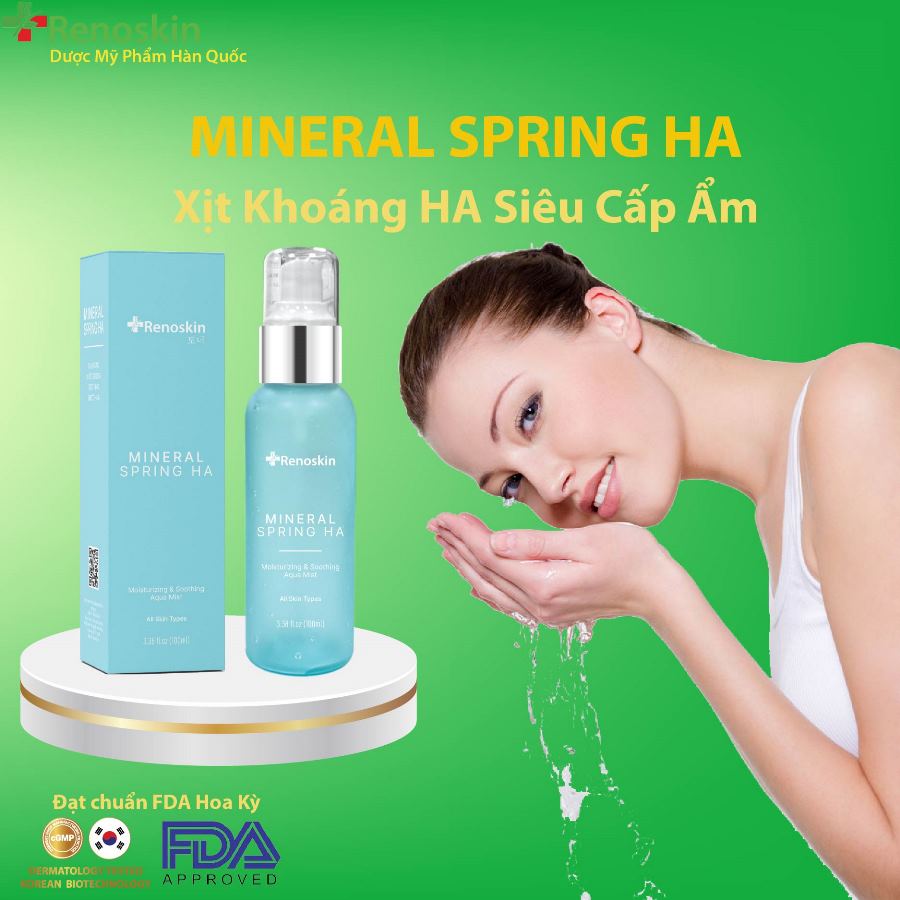 Xịt khoáng Mineral Spring HA siêu cấp ẩm cho làn da với những thành phần cấp ẩm và dịu nhẹ cho da như Adenosine, Allantoin, Niaciamide, Hyaluronate, Aqua và chiết xuất 13 loại hoa và thảo dược ôn đới...